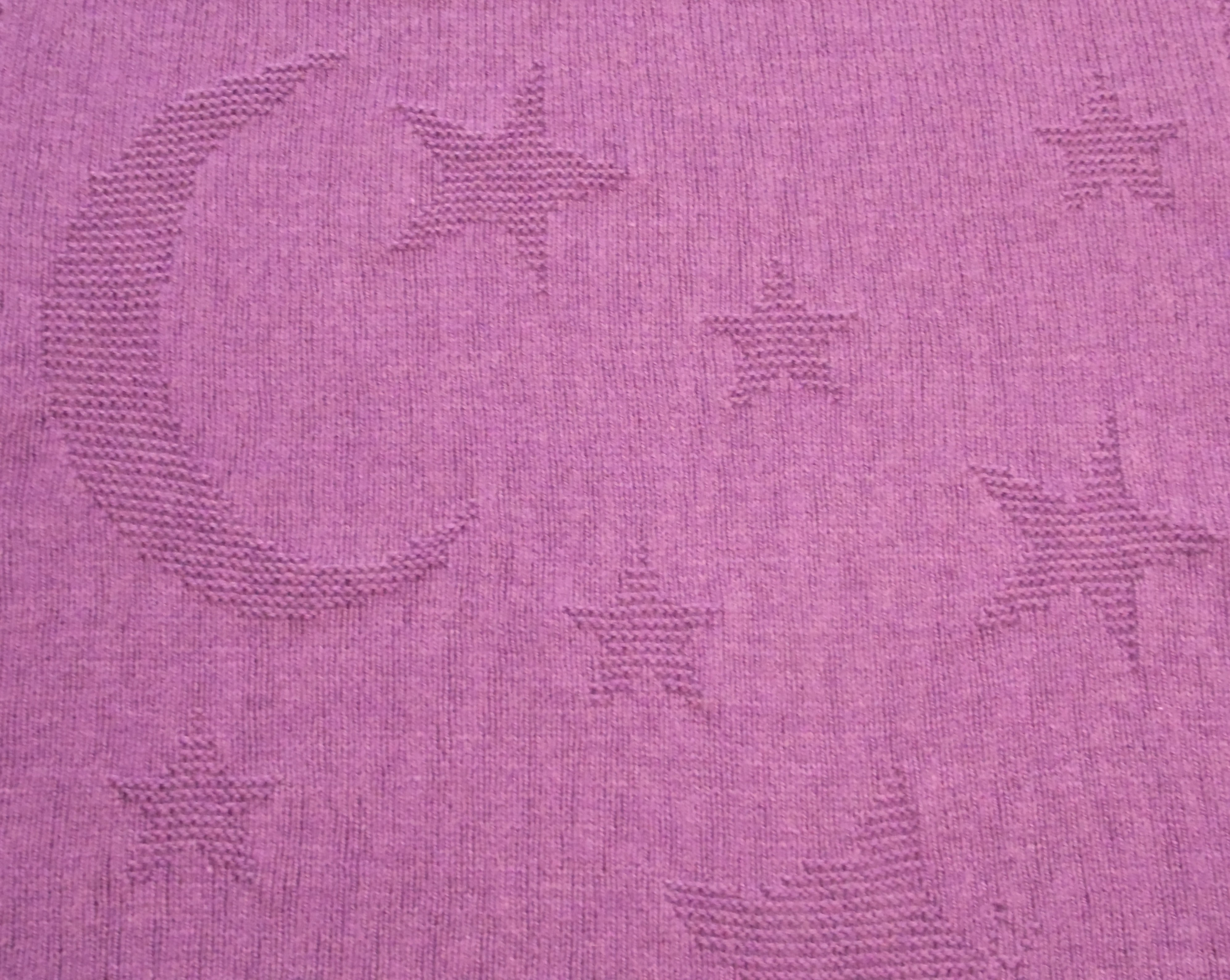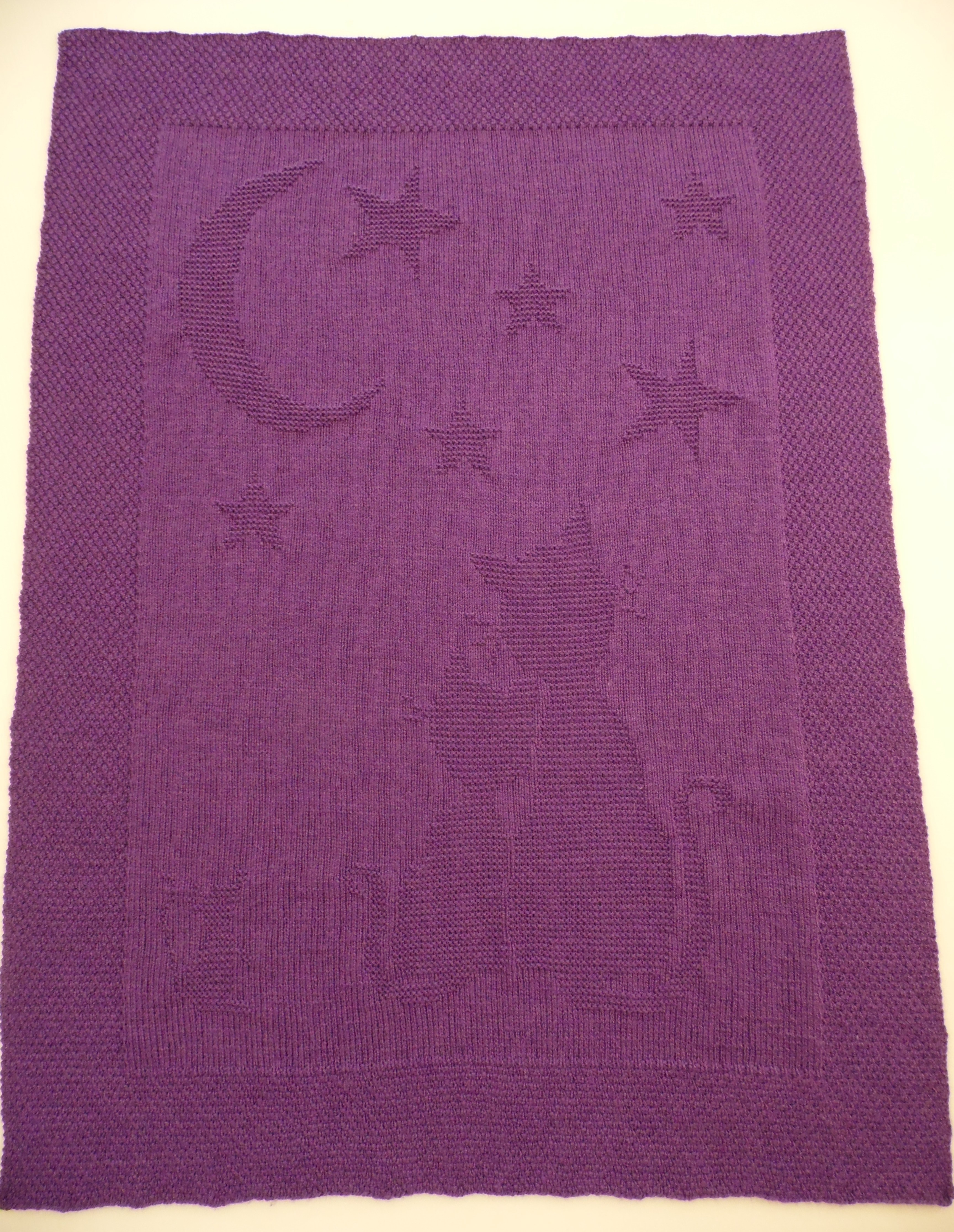 mit eingestrickten Katzen, Maus, Schmetterlingen und Sternen