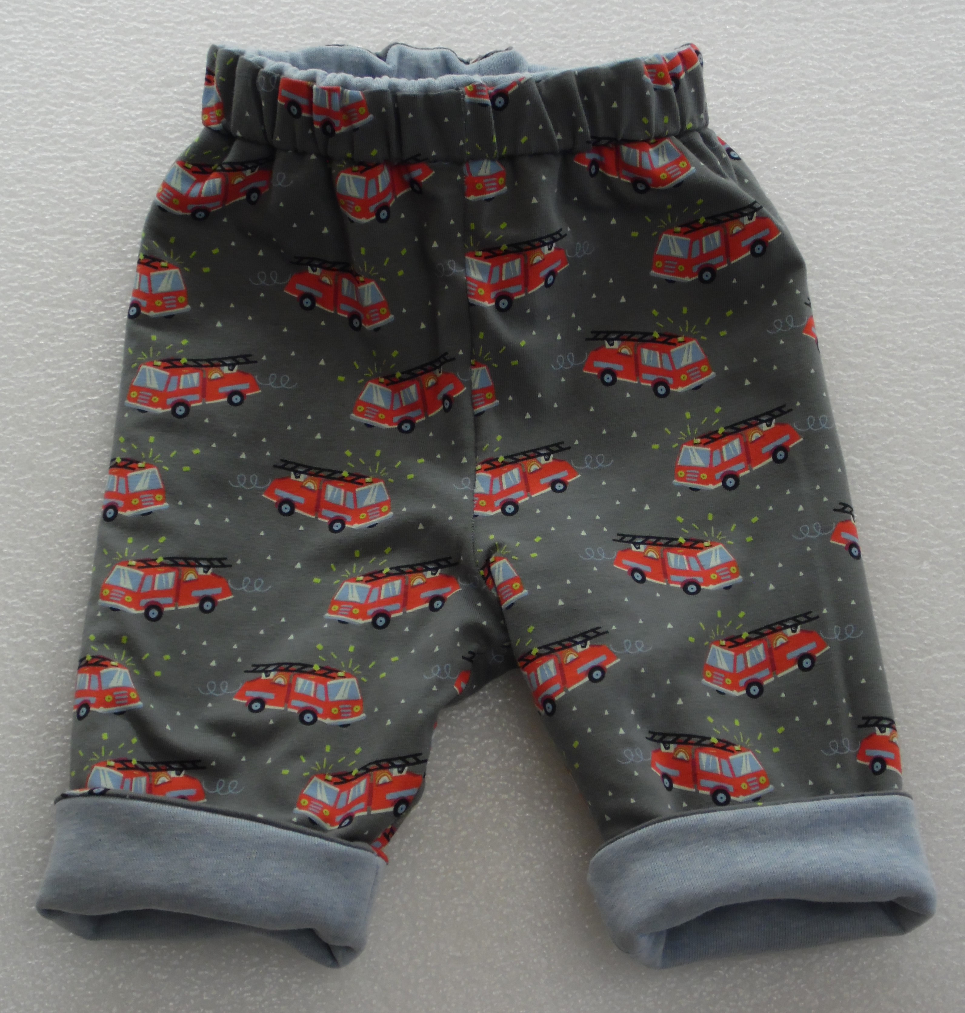 Innen: Baumwoll Jersey grau mit Feuerwehrautos